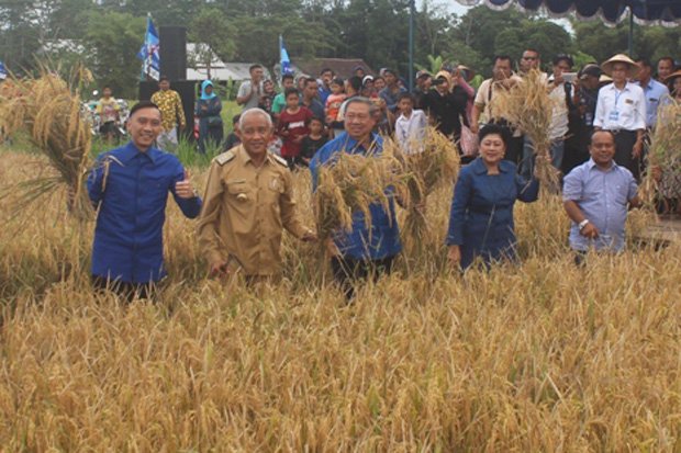 “Karena itu, kebijakan tidak boleh merugikan petani dan saat panen stop impor beras dari negara lain,” kata SBY saat berdialog dengan kader partai Demokrat usai penan padi di Bantarjo dan Bakalan, Donoharjo, Ngaglik, Sleman, Senin (9/4/2018).