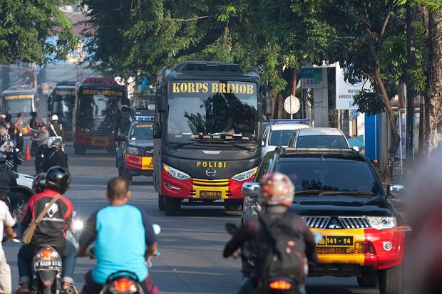 katakepri.com, Jakarta – Rombongan narapidana (napi) kasus terorisme telah tiba di Dermaga Diwijayapura Cilacap, Jawa Tengah, sekitar pukul 17.17 WIB, Kamis (10/5/2018). Delapan bus dari korps Brimob yang membawa mereka mendapatkan pengawalan super ketat dari petugas gabungan kepolisian dan TNI.