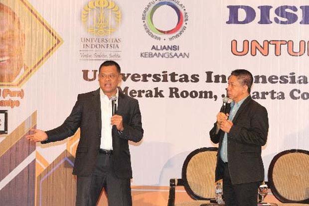 “Secara logika, politik kan enggak ada peluang gitu loh, benerkan,” ujar Gatot Nurmantyo dalam diskusi bertemakan “Satukan Hati untuk Indonesia” di JCC, Jakarta, kemarin. Gatot mengatakan, kondisi peta politik yang mempunyai kecenderungan terbagi dalam dua poros koalisi tidak mematahkan semangatnya dalam menjalin komunikasi dengan elite partai politik di Tanah Air.