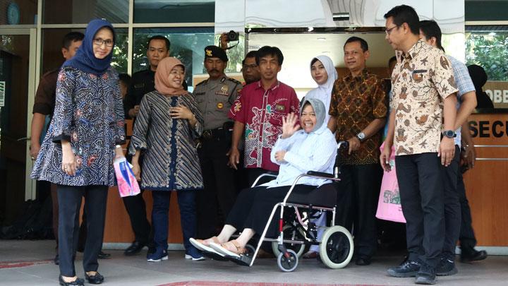 Katakepri.com, Jakarta – Tim dokter Rumah Sakit dr Soetomo memperbolehkan Wali Kota Surabaya Tri Rismaharini pulang setelah selama sepekan menjalani perawatan, Rabu, 3 Juli 2019. Risma keluar dari Graha Amerta RSUD dr Soetomo sekitar pukul 12.22 WIB mengenakan baju putih dan didorong menggunakan kursi roda.