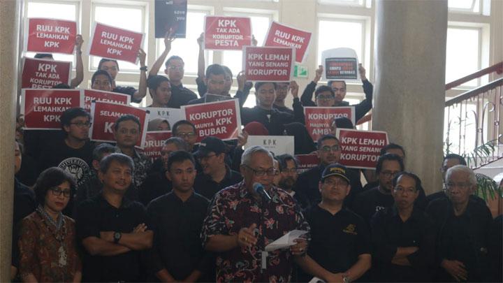 Katakepri.com, Yogyakarta – Sebanyak 100 dosen dan mahasiswa Universitas Gadjah Mada atau UGM Yogyakarta dari berbagai fakultas menyatakan kekecewaannya terhadap tidak tegasnya Presiden Joko Widodo atau Jokowi yang mendukung perubahan Undang-undang Nomor 30 Tahun 2002 tentang Komisi Pemberantasan Tindak Pidana Korupsi (revisi UU KPK).