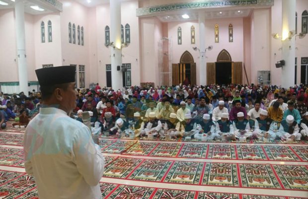 Katakepri.com, Bintan – Pemerintah Kabupaten Bintan menyambut kehadiran Bulan Rabi’ul Awal dengan Peringatan Maulidul Rasul di Masjid Besar An Nur Gunung Kijang atau akrab dikenal dengan Masjid “Pink”, Sabtu malam (16/11). Berbeda dengan peringatan Maulid Nabi ditahun-tahun sebelumnya, lantunan Shalawat terdengar menggema dari Masjid Pink yang dipandu langsung oleh Hadroh Pejuang Shalawat yang berasal dari Kijang Kota sebelum memulai Tausyiah.