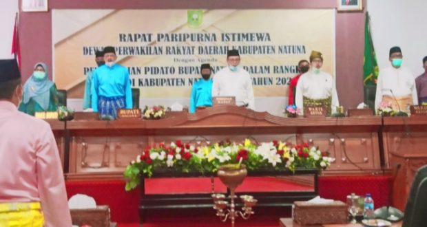 Katakepri.com, Natuna – DPRD Kabupaten Natuna menggelar rapat paripurna istimewa dengan agenda penyampaian pidato Bupati Natuna dalam rangka hari jadi Kabupaten Natuna ke 21 Tahun 2020.
