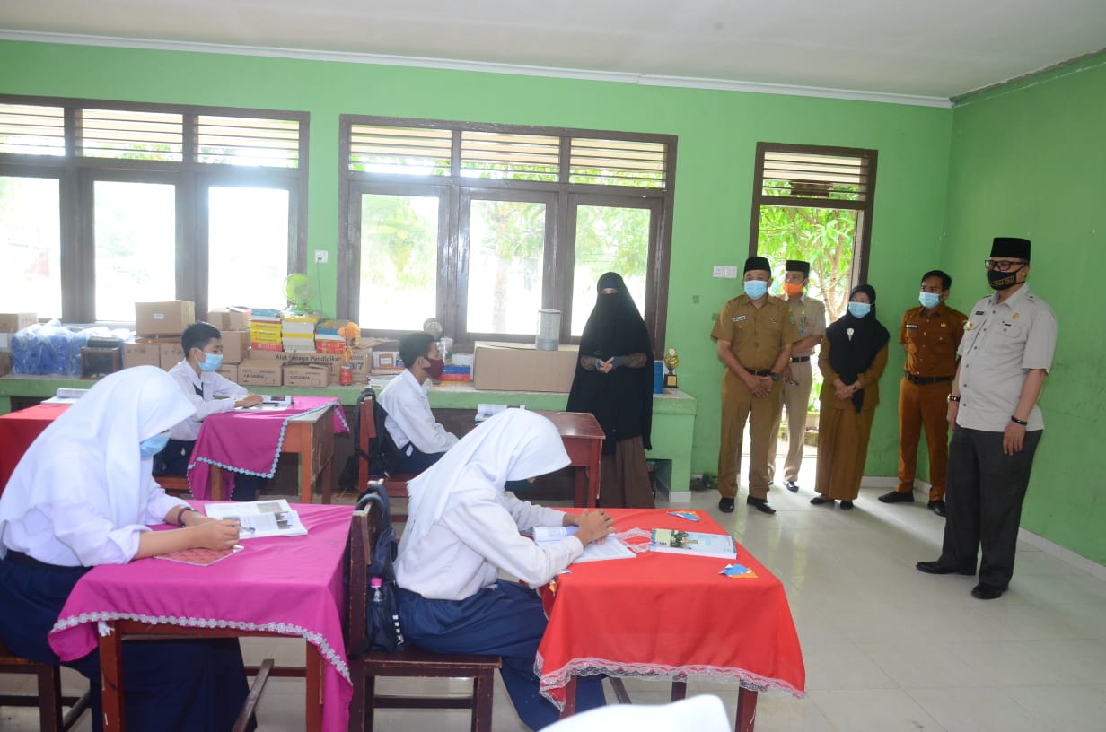 Katakepri.com, Lingga – Untuk memastikan kegiatan belajar mengajar (KBM) berjalan dengan lancar dengan sebagaimana mestinya, Pjs.Bupati Lingga Juramadi Esram di dampingi Asisten Pemerintahan Rusli, pada Senin (12/10/2020) pagi melakukan kunjungan ke beberapa sekolah di Daik, Kecamatan Lingga.
