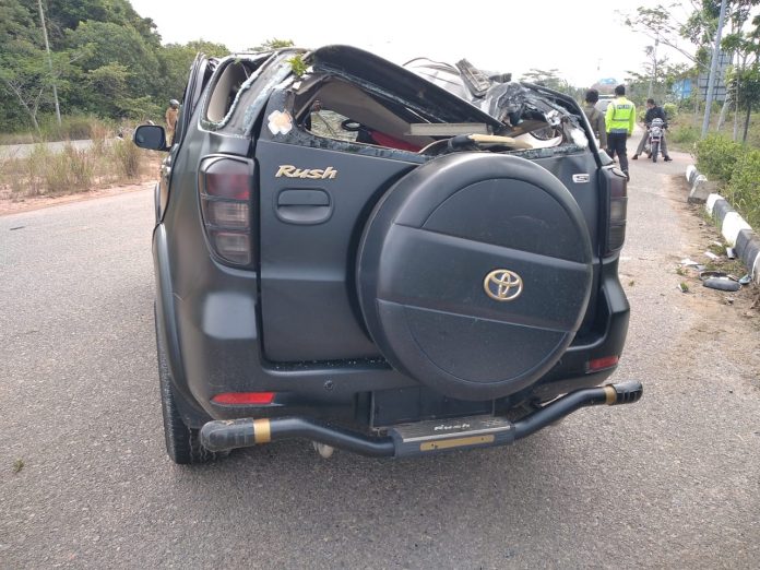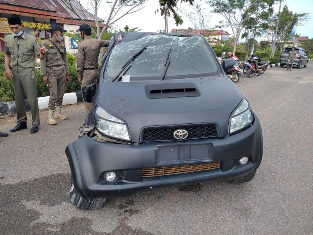 Sekilas tampak mobil Toyota Rush dengan Nomor Polisi (Nompol) BP 1831 FY yang dikendarai AM remuk pada bagian atap dan bamper mobil.