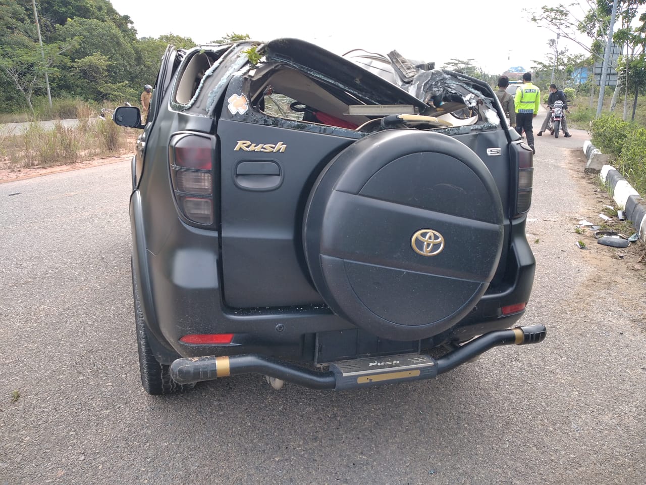 Katakepri.com, Tanjungpinang – Satu unit mobil Toyota Rush warna hitam doff remuk setelah mengalami kecelakaan tunggal di Jalan Sultan Mansyursyah, tepatnya di depan Kantor Dinas Pendidikan Provinsi Kepri, Dompak, Tanjungpinang.