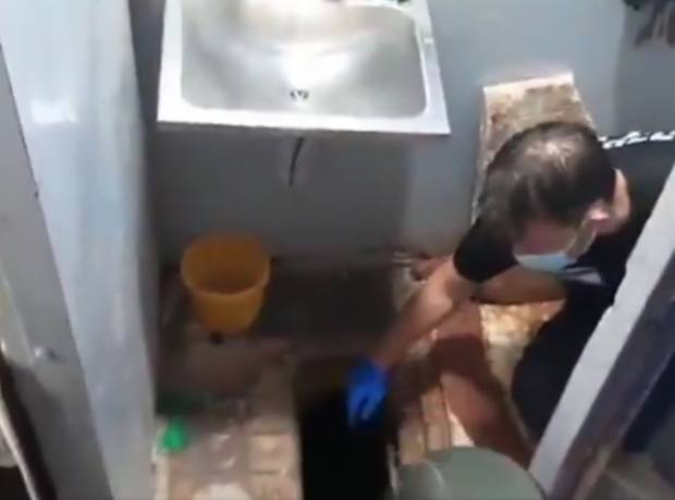 Foto dan video menunjukkan petugas memeriksa lubang kecil di bawah wastafel, dan lubang lain di tengah jalan tanah yang membentang di sepanjang dinding penjara.