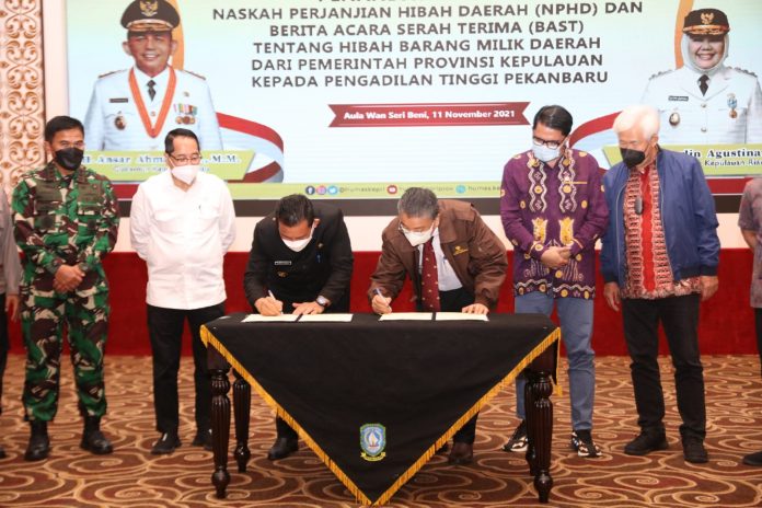 Rapat tersebut juga disejalankan dengan penandatanganan Naskah Perjanjian Hibah Daerah (NPHD) dan Berita Acara Serah Terima (BAST) Barang Milik Daerah dari Pemprov Kepri ke Pengadilan Tinggi Riau. Direncanakan Jum’at besok (12/11), Gubernur bersama Tim Banleg DPR RI akan melakukan peninjauan ke lokasi yang akan menjadi lahan berdirinya Pengadilan Tinggi dan Pengadilan Tinggi Agama Kepri.