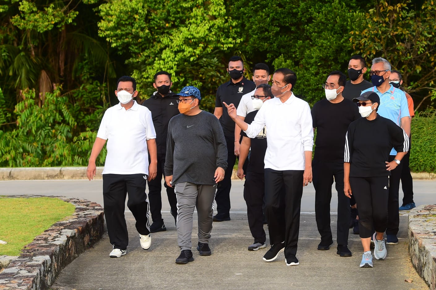 Katakepri.com, Bintan – Mengawali kunjungan kerjanya di Provinsi Kepulauan Riau, Selasa, 25 Januari 2022, Presiden Joko Widodo berolahraga bersama sejumlah menteri. Sekitar pukul 06.40 WIB, Presiden mulai berjalan kaki mengelilingi area The Sanchaya Resort Bintan, Kabupaten Bintan.