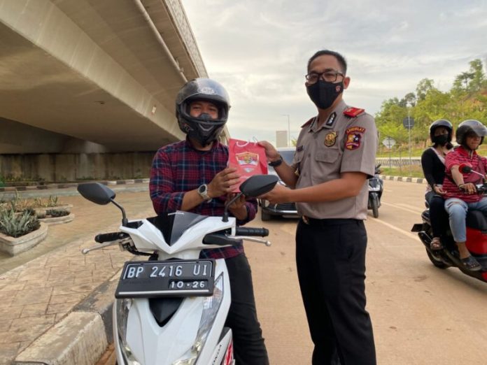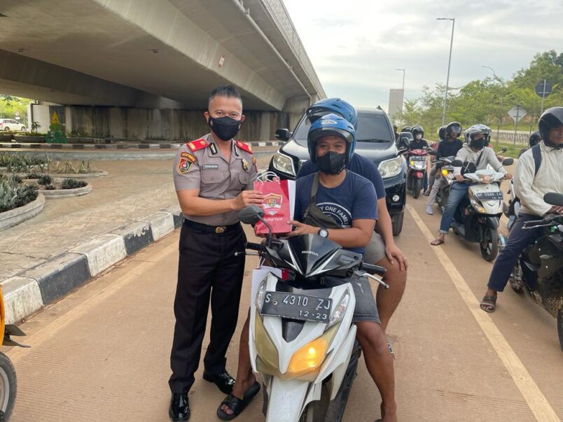 Mereka memberikan takjil kepada para pengendara yang berhenti di lampu merah dengan menggunakan pakaian dinas lengkap ala siswa Sespimmen. (*)