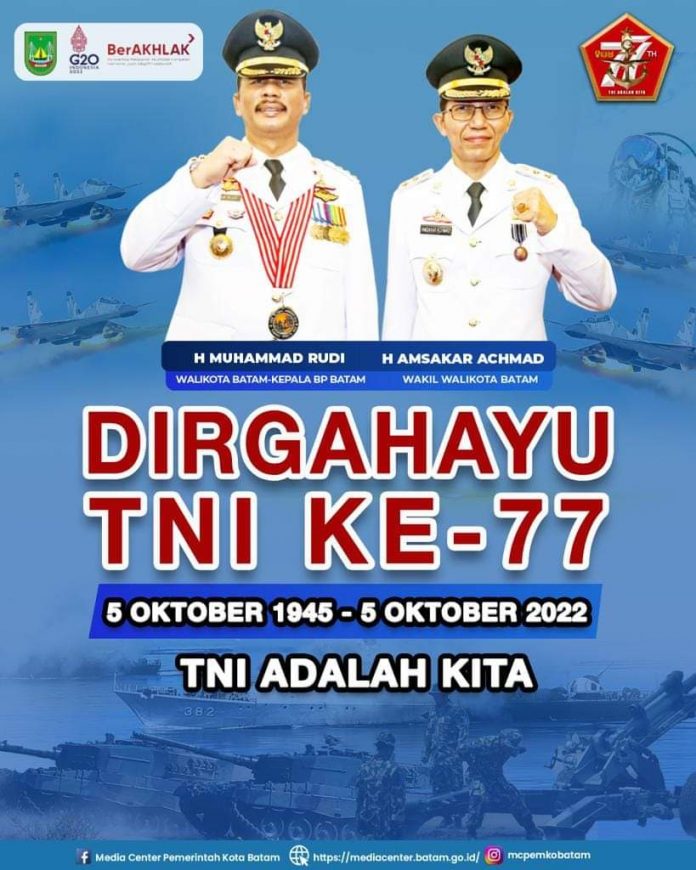Katakepri.com, Batam – Wali Kota Batam, Muhammad Rudi, menyampaikan ucapan HUT ke-77 TNI pada 5 Oktober 2022.