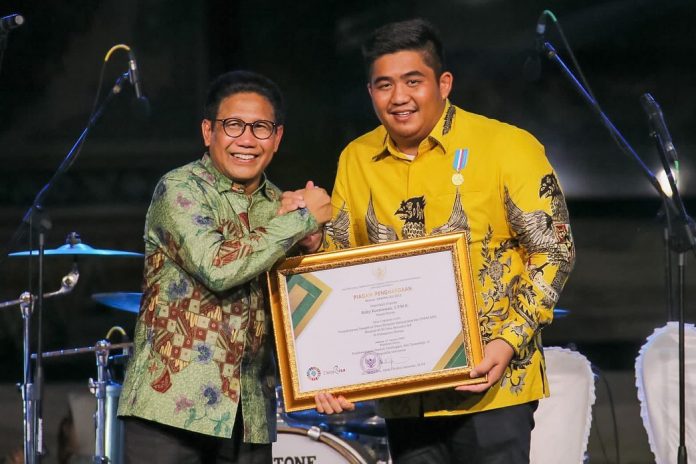 Untuk itu, Lencana Bakti Ekonomi Desa diserahkan langsung oleh Menteri Desa, Pengembangan Daerah Tertinggal dan Transmigrasi (Mendes PDTT) RI, Abdul Halim Iskandar kepada Bupati Bintan, Roby Kurniawan saat Malam Pesta Rakyat Hari Bumdesa di Halaman Disbudpar Bintan, Kamis (2/2) malam.
