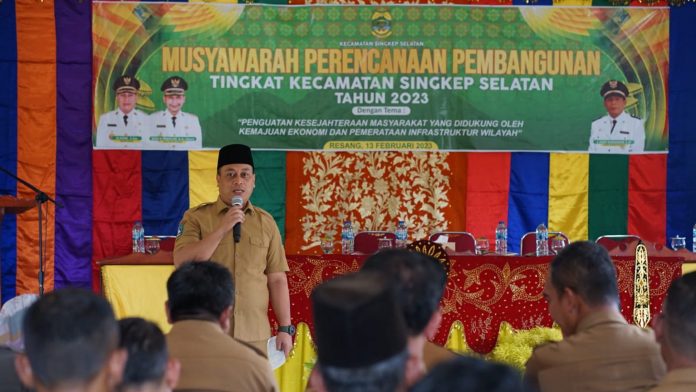 Katakepri.com, Lingga – Bupati Kabupaten Lingga M. Nizar didampingi Ketua TP PKK Kabupaten Lingga Maratusholiha, Meresmikan Langsung Musyawarah Perencanaan Pembangunan (Musrenbang) Tingkat Kecamatan Singkep Selatan dengan Tema “Penguatan Kesejahteraan Masyarakat yang didukung oleh Kemajuan Ekonomi dan Pemerataan Infrastruktur Wilayah ” Tahun 2023 di Gedung Serbaguna Desa Resang, Kecamatan Singkep Selatan, Kabupaten Lingga pada Senin (13/2/2023).