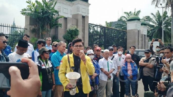 Katakepri.com, Jakarta – Badan Eksekutif Mahasiswa (BEM) Univeristas Indonesia bersama sejumlah serikat buruh mengadakan penyataan sikap menolak pengesahan Perpu Cipta Kerja menjadi undang-undang. Mereka menilai tindakan Presiden Jokowi hingga DPR RI melanggar konstitusi.