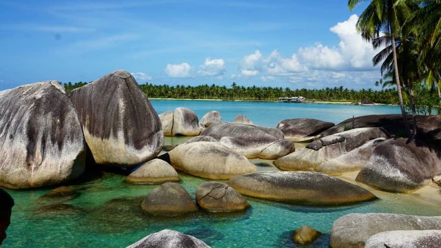 (Pantai Batu Kasah saat air laut surut. Pesona pantai nan indah berhiaskan batu-batu granit)