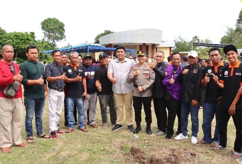 Bupati Bintan Roby Kurniawan bersama Kapolres Bintan AKBP Riky Iswoyo setibanya di lokasi acara langsung berbaur bersama ratusan Pekerja yang hadir dan memulai rangkaian Halal bi Halal hingga saling bersalam-salaman.