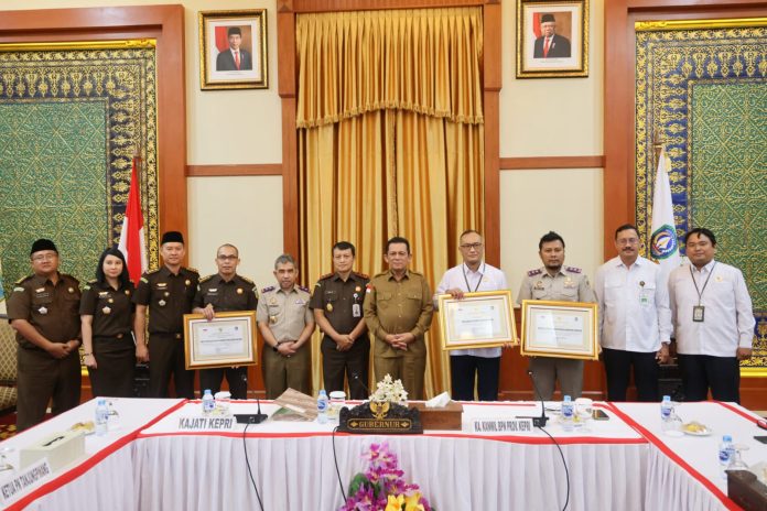 Turut hadir dalam acara ini Kajati Kepri Rudi Margono, Asdatun Kejati Kepri Wiranto, Kepala Kantor BPN Kabupaten Bintan Benny Rianto, Ketua PN Tanjungpinang diwakili Panitera PN Tanjungpinang, Tim Percepatan Pembangunan, serta Para Kepala OPD Pemprov Kepri. (*)