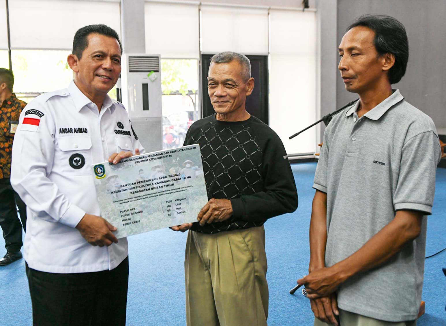 Katakepri.com, Bintan – Gubernur Kepulauan Riau H. Ansar Ahmad menyerahkan bantuan pertanian dan perikanan yang disejalankan dengan penyerahan Bantuan Pangan Pemerintah Tahap 2 untuk Kabupaten Bintan di Aula Kantor Bupati Bintan, Kamis (14/09).