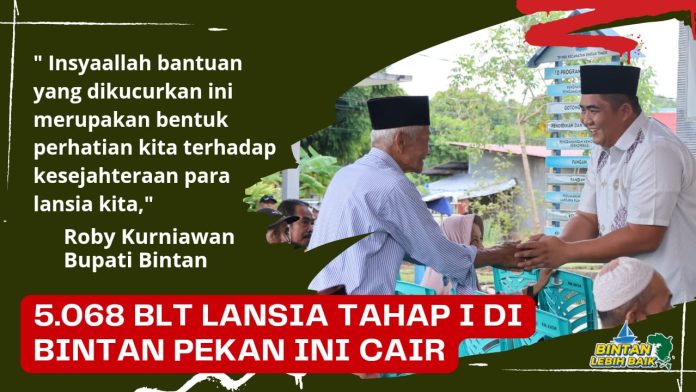 Katakepri.com, Bintan – Bupati Bintan, Roby Kurniawan mengatakan bahwa menyambut bulan suci Ramadhan 1445 H, Pemda Bintan melalui Dinas Sosial Kabupaten Bintan segera menyalurkan BLT (Bantuan Langsung Tunai) Tahap I bagi Lansia se Kabupaten Bintan.
