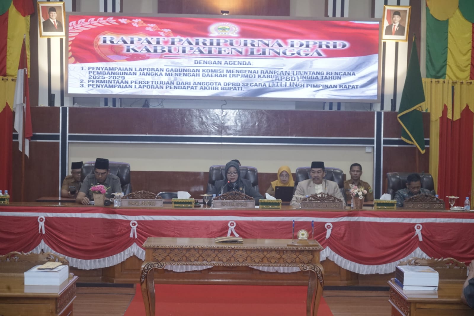 Katakepri.com, Lingga – Dewan Perwakilan Rakyat Daerah Kabupaten Lingga melaksanakan Rapat Paripurna dengan agenda Permintaan Persetujuan Rancangan Peraturan Daerah Tentang Rencana Pembangunan Jangka Menengah Daerah (RPJMD) Kabupaten Lingga Tahun 2025 – 2029. Senin (4/8).