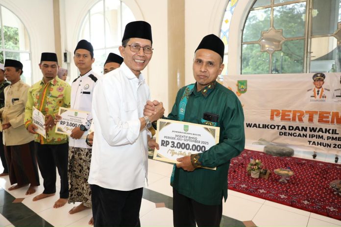 Katakepri.com, Batam – Wali Kota Batam, Amsakar Achmad, menyerahkan secara simbolis insentif bagi tokoh agama yang tergabung dalam Ikatan Persaudaraan Imam Masjid (IPIM), Persatuan Mubaligh Batam (PMB), dan Badan Musyawarah Guru Al-Qur’an (BMGQ) periode III tahun 2025.