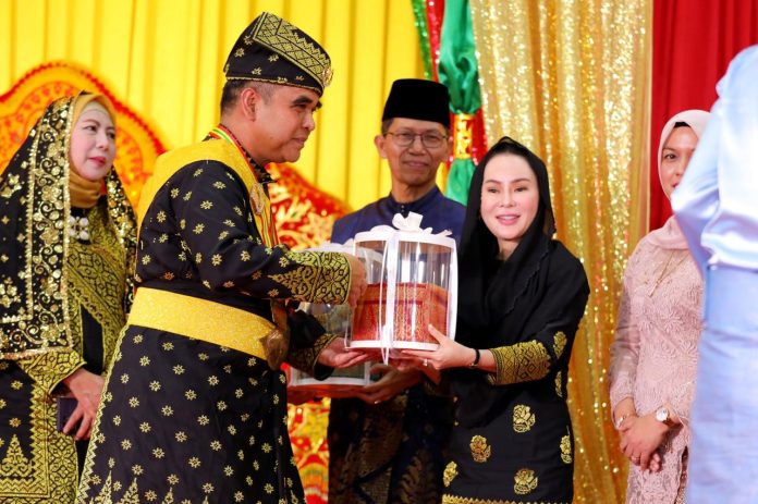 Katakepri.com, Batam – Wali Kota Batam, Amsakar Achmad, bersama Wakil Wali Kota Batam, Li Claudia Chandra, menghadiri Penganugerahan Gelar Kebesaran Adat Lembaga Adat Melayu (LAM) Kepulauan Riau di Balai Adat Seri Indra Sakti LAM Kepri, Tanjungpinang, Jumat (14/11/2025).